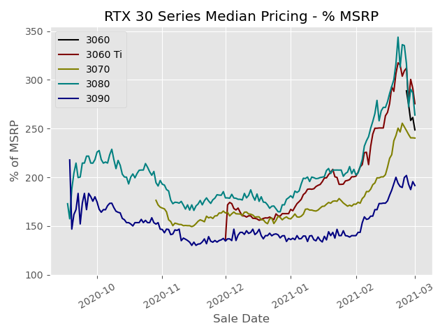 In 2021, due to a combination of COVID-19 and GPU Mining, it was nearly impossible to get a GPU for anywhere near MSRP. In fact, I remember looking at the price of my current GPU at the time, the GTX 1080, and the used price quite literally doubled. The then-current-gen 30 Series Nvidia cards were scalped and sold on eBay, marked up hundreds of dollars. The RTX 3090 was marked up thousands. I remember people were "lucky" to score the lowest-end 30 Series card: The RTX 3060, for 800 dollars apiece.
